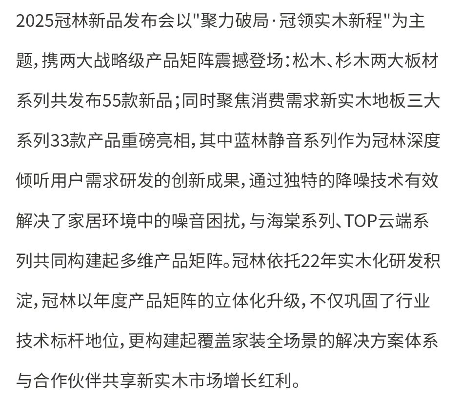 聚力破局·冠领实木新程 | 2025冠林新实木地板&实木板材新品发布会圆满落幕!